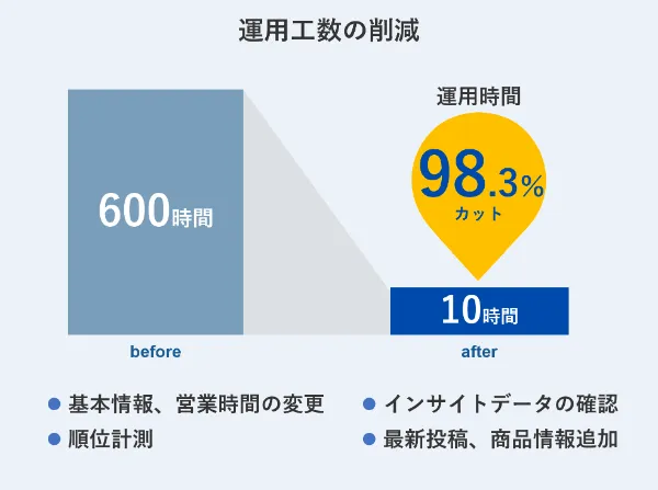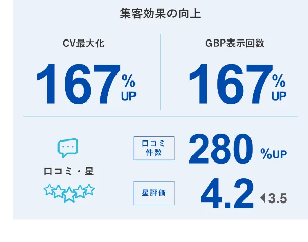 Googleビジネスプロフィールに関連する作業が一つのツールでまとめて作業できるようになり、社内でも各部署で確認をとりやすい状況になった。