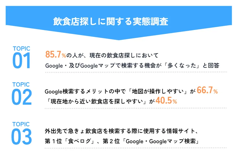 1.多くの人がお店を探す時にGoogleマップを使っている